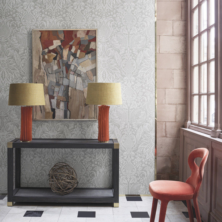 A grand floral damask wallpaper guaranteed to bring elegance and splendour to any room in the home, available in this dusky empire grey colourway.