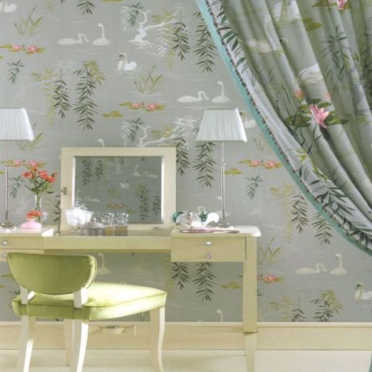 The Swan Lake design from Nina Campbell brings sophistication to any interior. Designed with paste-the-paper application. Each roll is 52 cm wide, 68.5 cm repeat, offset match.