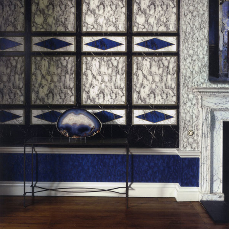 Kershaw Plain by Nina Campbell features Black-Ivory tones in a luxurious designer wallpaper. This wallpaper features non-woven backing, paste-the-wall application for easy hanging, washable finish, and strippable for easy removal. Each roll is 52 cm wide, 61 cm repeat, offset match.