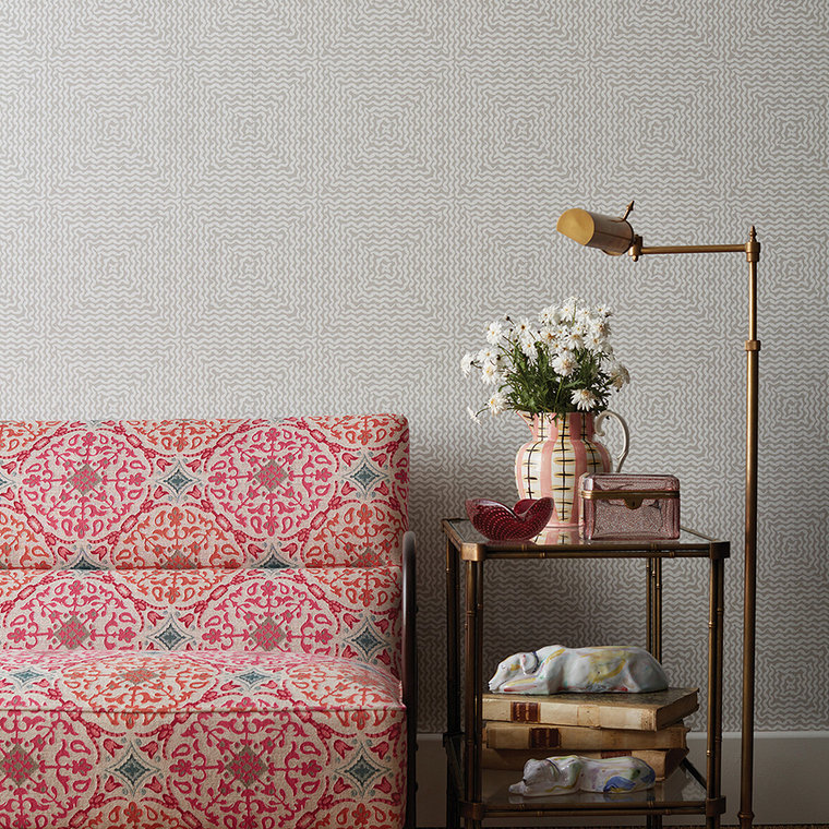 The Mourlot design from Nina Campbell brings sophistication to any interior. Designed with non-woven backing, paste-the-wall application for easy hanging, and washable finish. Each roll is 52 cm wide, 27 cm repeat, straight match.