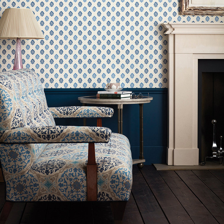 Camille is a premium designer wallpaper from Nina Campbell. This wallpaper features non-woven backing, paste-the-wall application for easy hanging, and washable finish. Each roll is 52 cm wide, 9 cm repeat, straight match.