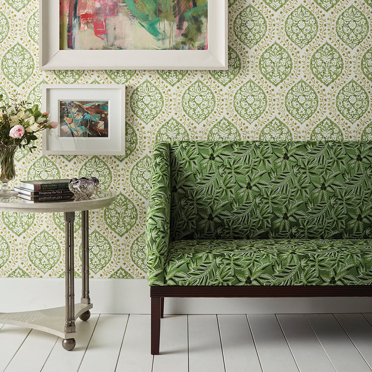 Marguerite is a premium designer wallpaper from Nina Campbell. This wallpaper features non-woven backing, paste-the-wall application for easy hanging, and washable finish. Each roll is 52 cm wide, 38 cm repeat, straight match.