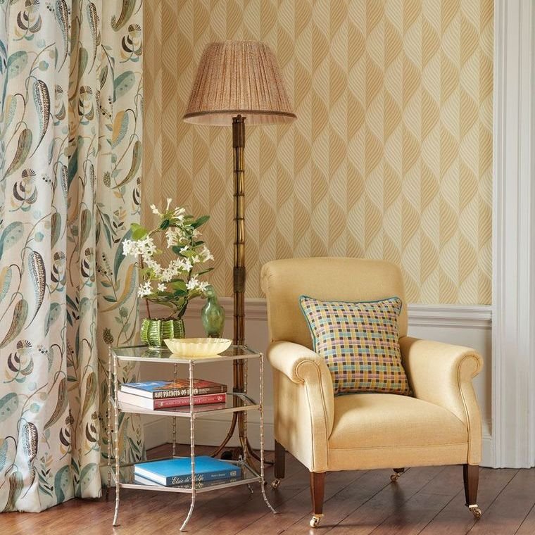 A painterly pattern of delicate brushstrokes forms this stylised geometric leaf design, shown here in a stoney grey colourway.