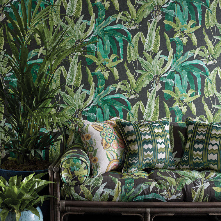 Freshen up any living space with this elegant array of luscious leaves, shown here in rich shades of green over a soft white backdrop.