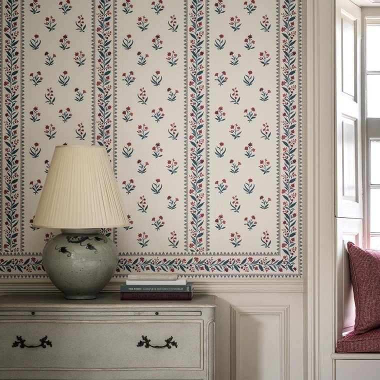 Part of the Nina Campbell collection, Petit Dapuri is a luxurious designer wallpaper. Crafted with non-woven backing, paste-the-wall application for easy hanging, and washable finish. Each roll is 52 cm wide, 61 cm repeat, straight match.