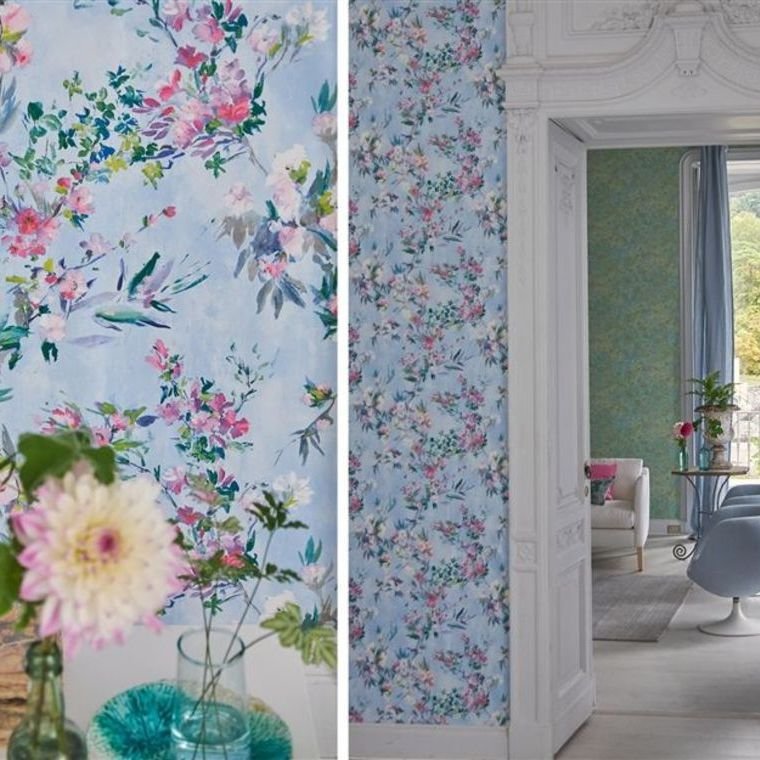 The Faience Sky design from Designers Guild brings sophistication to any interior. Designed with washable finish. Each roll is 53 cm wide, 53 cm repeat, offset match.