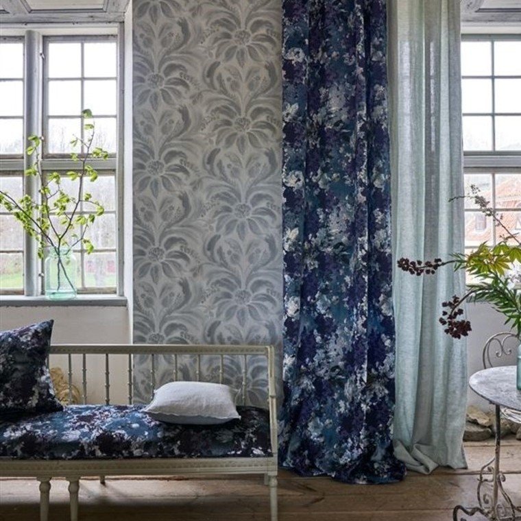 A conventional damask pattern brought to life with graceful watercolour brushstrokes and metallic speckles, available in eight soothing shades.