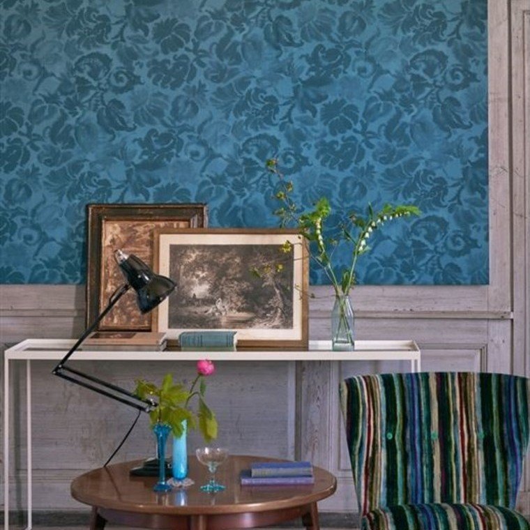 A grand, textured, spiralling damask design available in seven alluring watercolour shades.