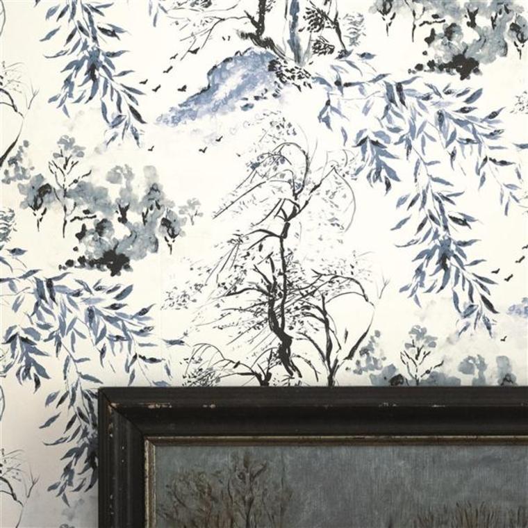 Winter Palace by Designers Guild features Indigo tones in a luxurious designer wallpaper. This wallpaper features washable finish. Each roll is 68.5 cm wide, 38 cm repeat, straight match.