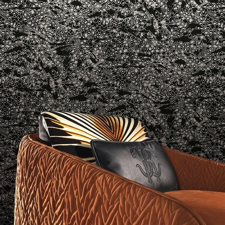 From the Roberto Cavalli Home No 8 collection, this premium designer wallpaper brings sophistication to any interior. This wallpaper features vinyl on non-woven backing, paste-the-wall application for easy hanging, scrubbable finish, and strippable for easy removal. Each roll is 106 cm wide, 60 cm repeat, straight match.
