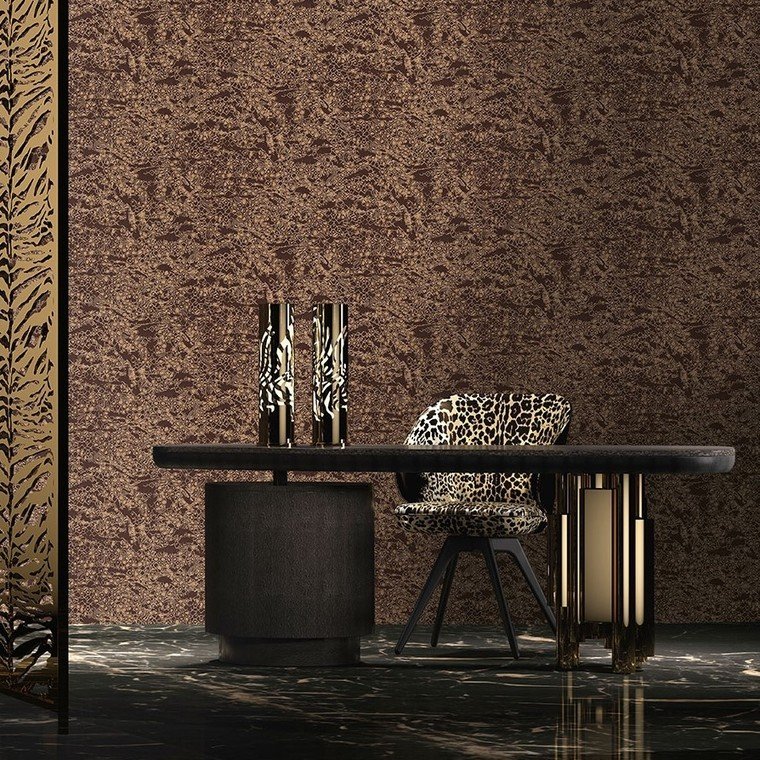 This luxurious wallpaper is part of Roberto Cavalli's Home No 8 collection. Crafted with vinyl on non-woven backing, paste-the-wall application for easy hanging, scrubbable finish, and strippable for easy removal. Each roll is 106 cm wide, 60 cm repeat, straight match.