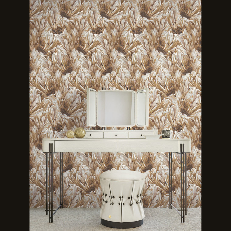 Part of the Roberto Cavalli collection, Home No 9 is a luxurious designer wallpaper. Crafted with vinyl on non-woven backing, paste-the-wall application for easy hanging, scrubbable finish, and strippable for easy removal. Each roll is 106 cm wide, 86 cm repeat, straight match.