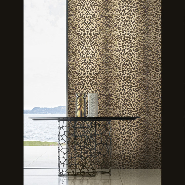 Home No 9 is a premium designer wallpaper from Roberto Cavalli. This wallpaper features vinyl on non-woven backing, paste-the-wall application for easy hanging, scrubbable finish, and strippable for easy removal. Each roll is 106 cm wide, 53 cm repeat, straight match.
