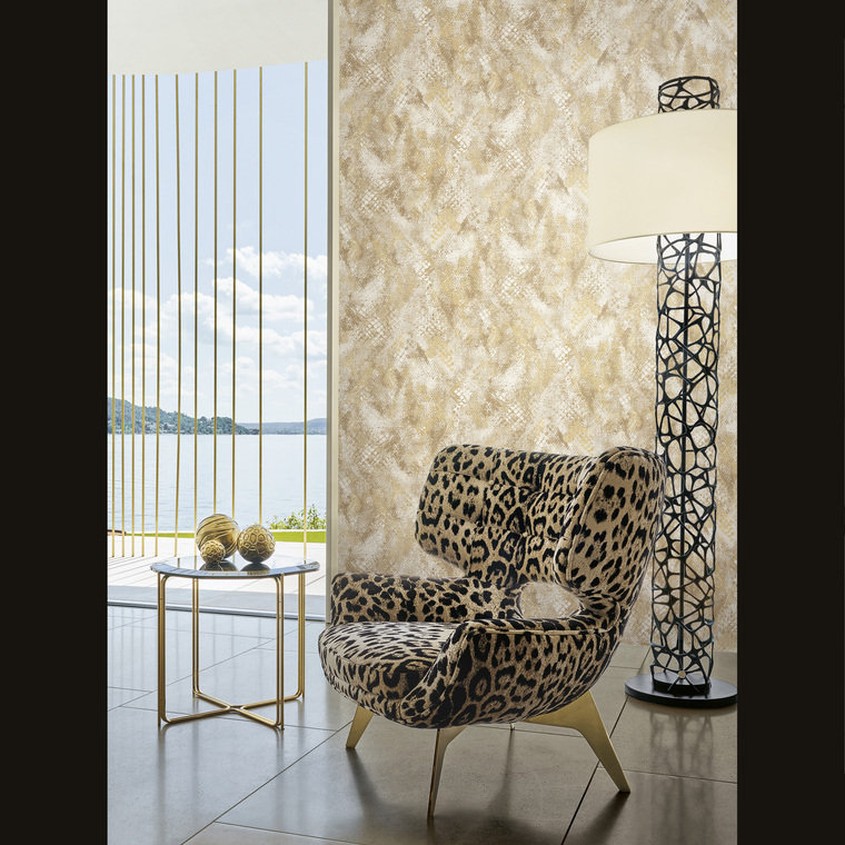 The Home No 9 design from Roberto Cavalli brings sophistication to any interior. Designed with vinyl on non-woven backing, paste-the-wall application for easy hanging, scrubbable finish, and strippable for easy removal. Each roll is 106 cm wide, 64 cm repeat, straight match.