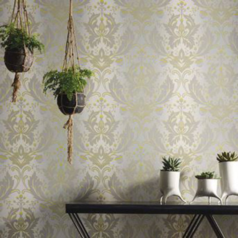 Viceroy by Matthew Williamson features Turquoise-Gold tones in a luxurious designer wallpaper. This wallpaper features non-woven backing, paste-the-wall application for easy hanging, washable finish, and strippable for easy removal. Each roll is 52 cm wide, 64 cm repeat, straight match.