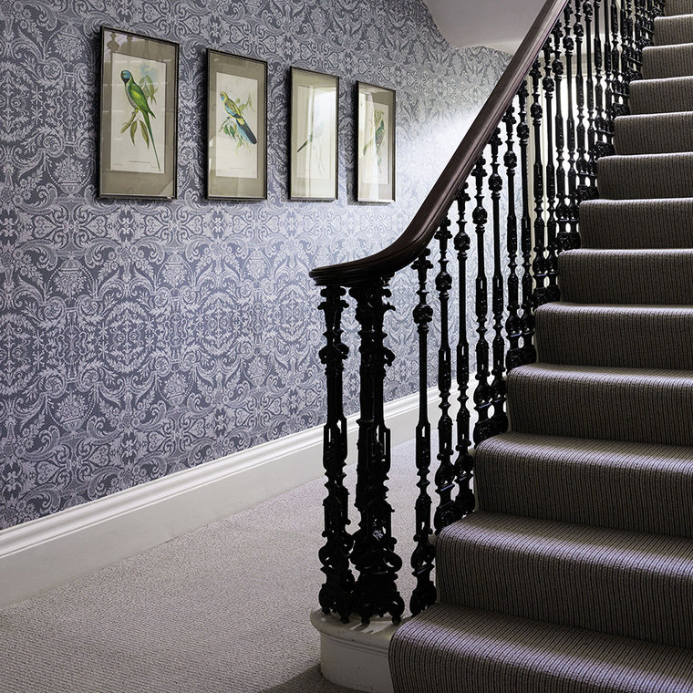 Crisp monochrome stone lace like pattern with an orangery theme, a quatrefoil wallpaper that flows along the walls with a subdued polish that adds dimension and an artistic flair to your walls.