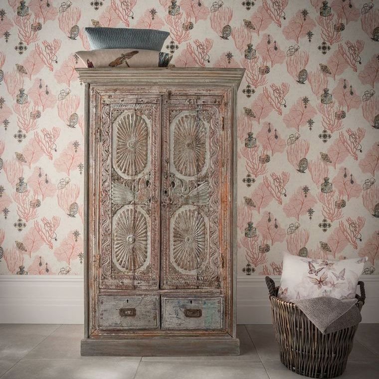 Explore the hidden treasures of the mysterious sea as pieces of luxurious jewellery and precious gemstones become entangled amongst the wriggling tentacles of coral, shown here in a lovely amethyst, coral and gold colourway.