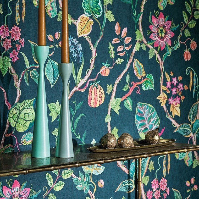 The Mythica Mallard design from Osborne & Little brings sophistication to any interior. Designed with non-woven backing, paste-the-wall application for easy hanging, and washable finish. Each roll is 70 cm wide, 110 cm repeat, offset match.